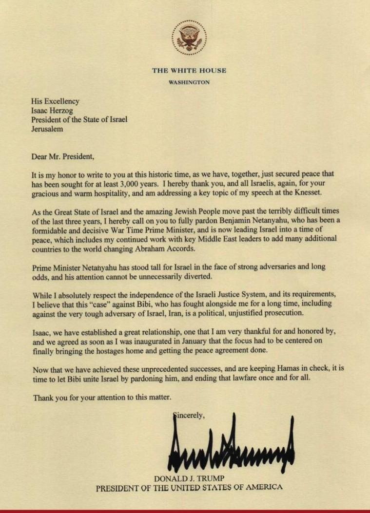 362 views | 2 weeks agoTrump writes a Letter to the Israeli Government begging them to pardon Bibi Netanyahu |
